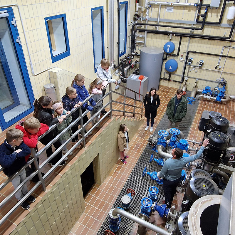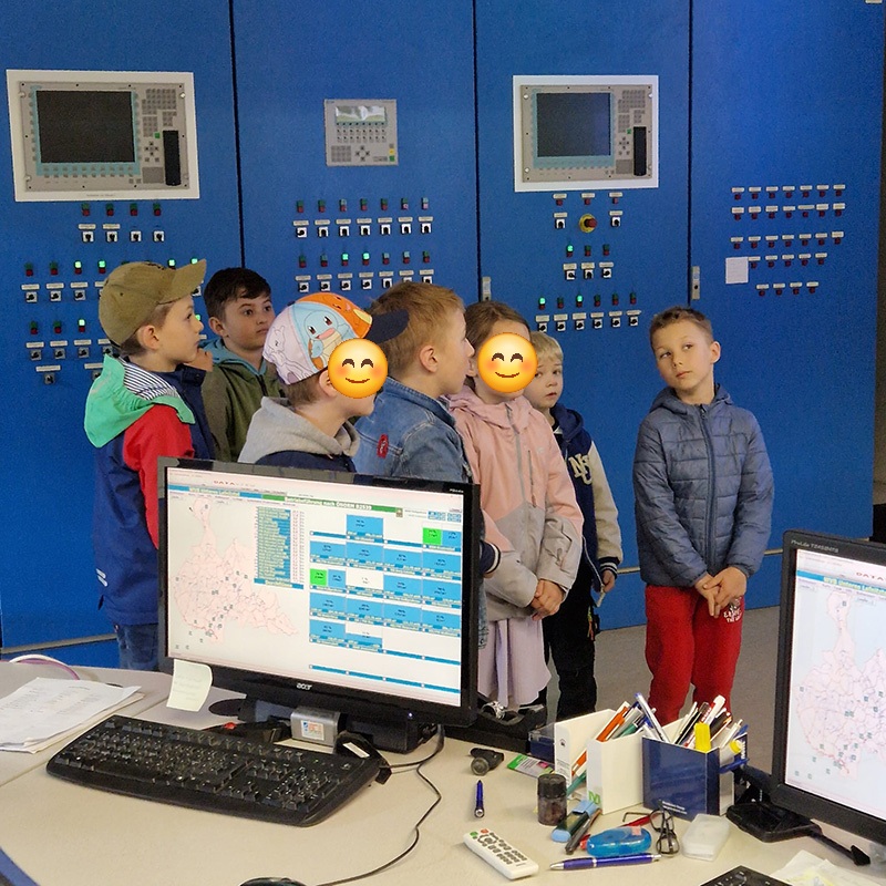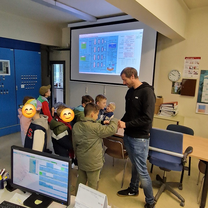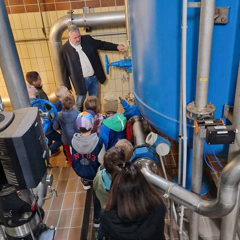 Zur Begrüßung durch Geschäftsführer Richard Vettermann nahmen die Kinder im Sitzungssaal Platz. Nach der Filmvorführung über die vielfältigen Aufgaben der Wasserversorgung wurde den Kindern die Wasseraufbereitung vor Ort erklärt, inklusive der eingesetzten Computertechnologie zur Überwachung und Steuerung der Anlagen.