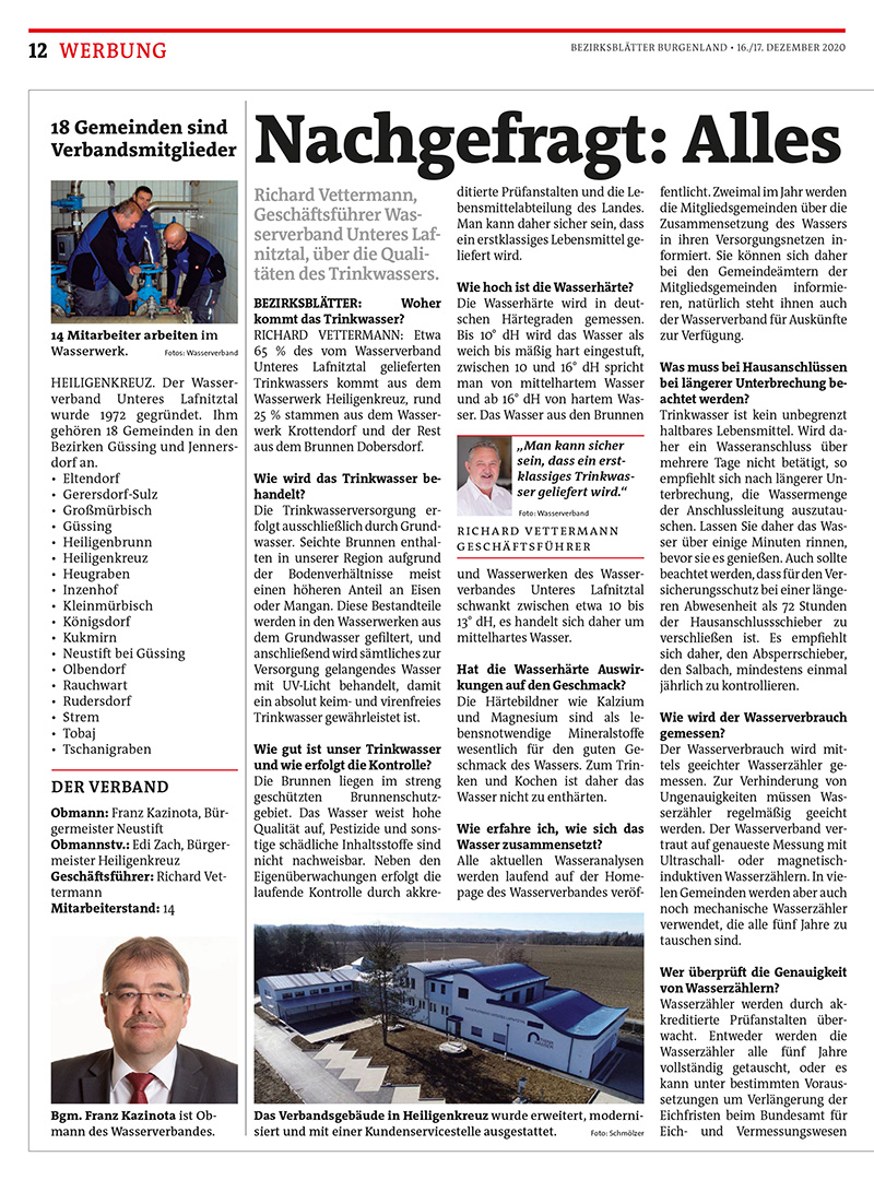 Abnehmer und für die Wasserqualität in ihren Leitungen im Ort. Es genügt nämlich nicht, das Wasser einfach durch die Leitungen rinnen zu lassen, sondern die Anlagen sind auch regelmäßig fachgerecht durch geschultes