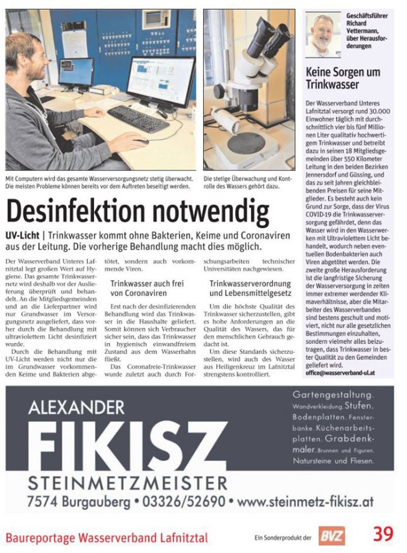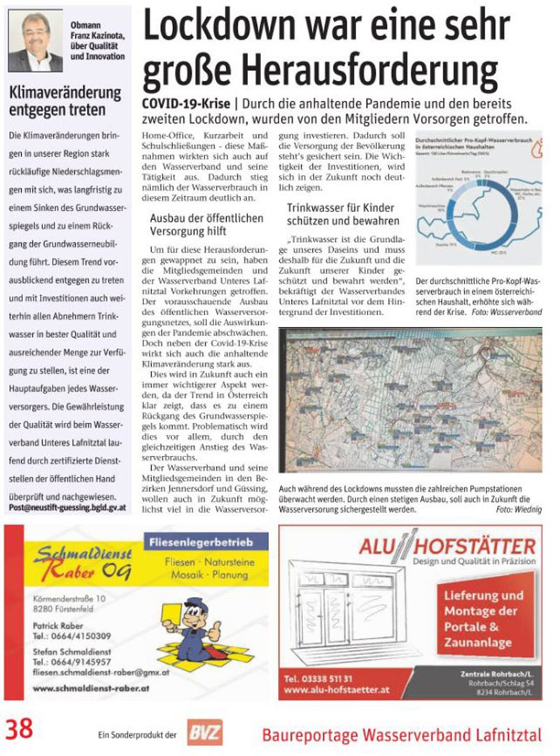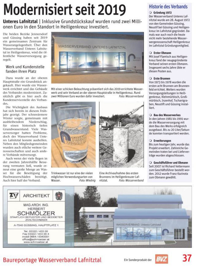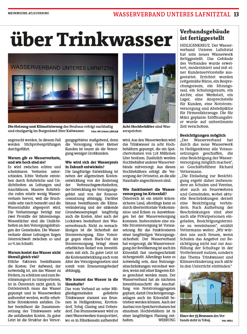 Zentrum für Erneuerbare Energie Güssing erstellt werden. Gerne standen wir zur Beratung mit unseren Erfahrungen zur Krisenvorsorge bei der öffentlichen Wasserversorgung zur Verfügung.